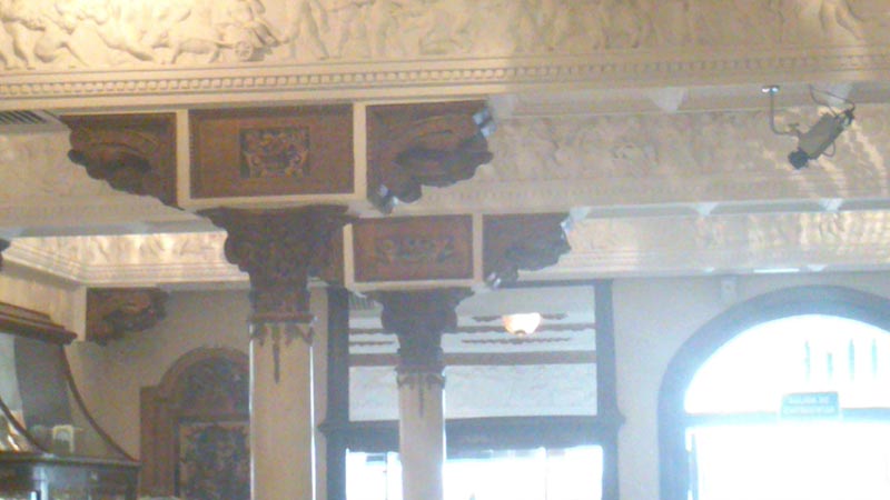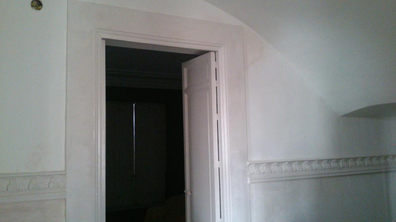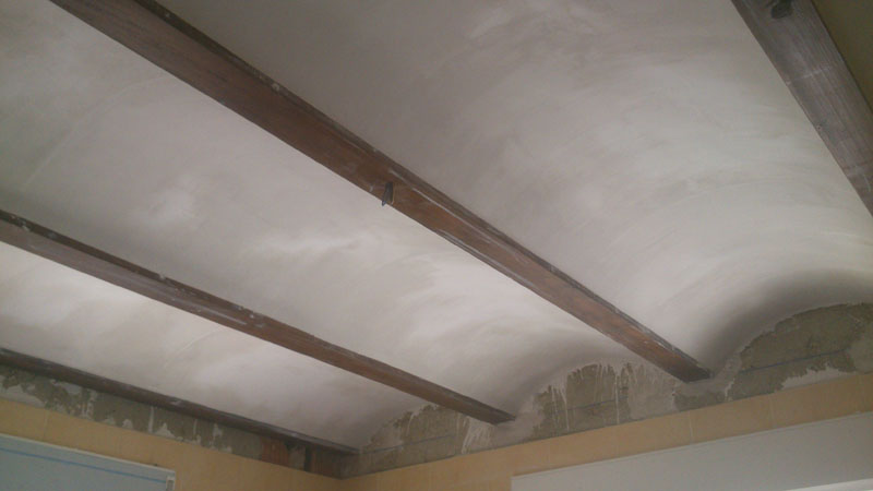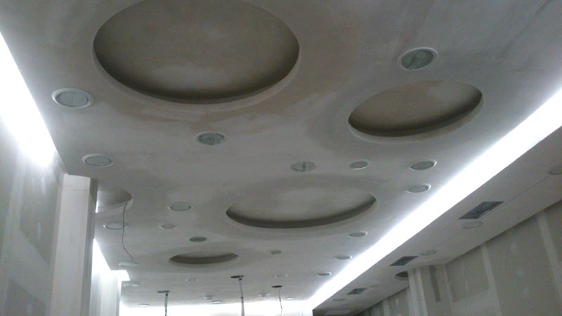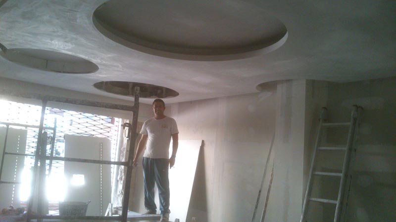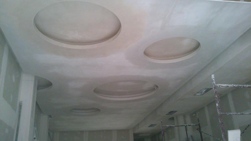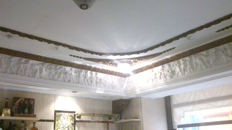 Aquí se puede ver dos techos de escayola que están decorados de diferente manera el de la izquierda con unas semiescocias y unos junquillos por dentro en rustico.