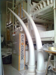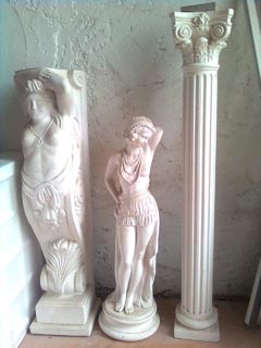 Aquí se puede observar diferentes figuras en escayola que se usan para decorar salones, entradas, pasillos etc. Como colmillos de elefante estatuas de todo tipo femeninas de hombre de animales etc.
