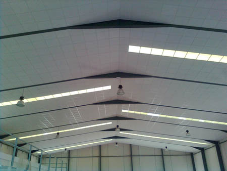 COMO PUEDEN OBSERVAR ESTE TECHO DESMONTABLE DE ESCAYOLA FUE COLOCADO EN UNA NAVE.